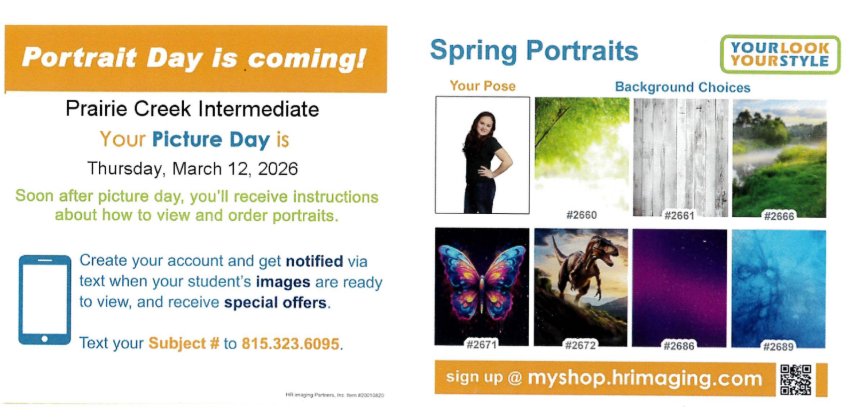 Shortly after spring break, your student will bring home an image proof sheet. The image sheet will have ordering information and the deadline. After the deadline, the orders will be shipped to Creek.
